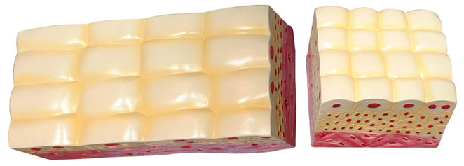 示膀胱空虛時(shí)與充盈時(shí)各細(xì)胞頂面與側(cè)面的形態(tài)
