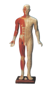 高850mm,一側示肌肉、皮神經,一側示十四經脈、穴位及經外穴。