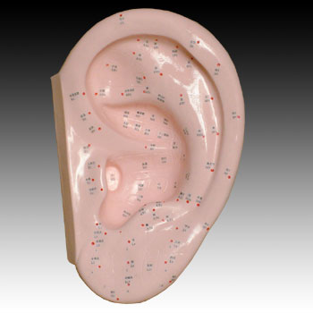 本模型用PVC制成,標(biāo)出了相對(duì)應(yīng)的人體內(nèi)臟和軀干在耳廓上的針穴位置。附穴位使用手冊(cè)。