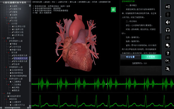 6.三維互動視覺體驗(yàn),形象闡釋病理體征的解剖變化及聽診音產(chǎn)生原理,界面生動、操作簡捷。