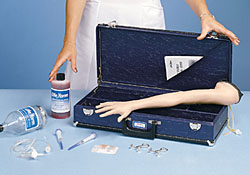 A soft foam is used to simulate the deltoid muscle and allows the student to "get the feel" of administering intramuscular injections to children. Simulated bone in the shoulder defines and limits the injection area. Water may be used as an injection fluid in the shoulder area. Life/form® Pediatric Injectable Training Arm includes a Life/form® Arm with white skin, fluid supply bag, 3 cc syringe, 1 pint Life/form® Blood, teaching guide, and hard carrying case. One-year warranty.