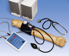這款左臂的模型也可與成人病人護(hù)理模型相連(若模型提供此選項(xiàng))。心臟收縮和舒張壓,聽診間歇和脈搏頻率可自行確定。血壓計(jì)綁帶上的壓力可由屏幕顯示出來。
