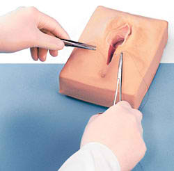 Life/form® Episiotomy Simulators – Set of 3 These Life/form® simulators provide a realistic way for students to learn good surgical techniques. The simulators provide students with a variety of repair experiences without the constraint of time and concern for safety, which are factors with a live patient. The simulators can be used by the student in a learning lab with an instructor, or by the student individually in the clinical setting just prior to a patient experience. They are also useful as a homework teaching aid that can be signed out at night and returned the next day. In addition to being portable, the lifelike texture allows the learner to develop a “feel” for instrument handling, tension on suture, and the advantages of one method of tying knots over another. Each simulator comes with an instruction booklet and is individually boxed. Three year warranty. |